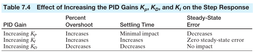 - When \(K_D = 0\), we have a proportional plus integral (PI) controller
