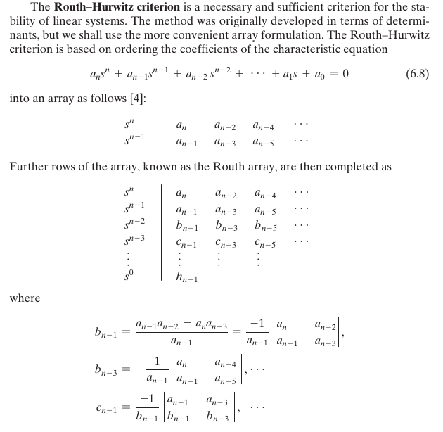 - A necessary and sufficient condition for a feedback system to be stable is that all the poles of the system transfer function have negative real parts.