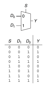 - If S = 0, Y = \(D_0\), and if S = 1, Y = \(D_1\). S is also called a control signal because it controls what the multiplexer does.