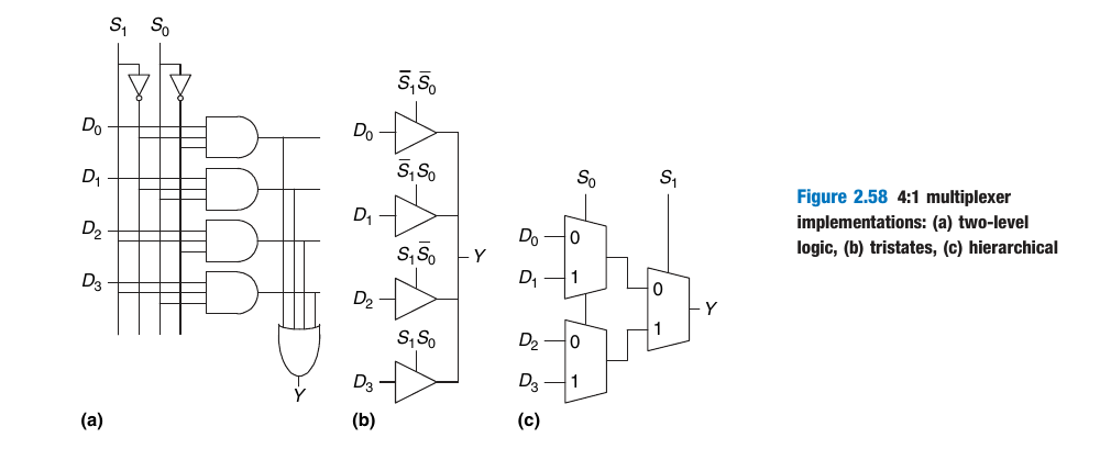 Selecting the best multilevel implementation of a specific logic function is not a simple process. Moreover, “best” has many meanings: fewest gates, fastest, shortest design time, least cost, least power consumption. For example, we have been using ANDs and ORs, but in CMOS, NANDs and NORs are more efficient.