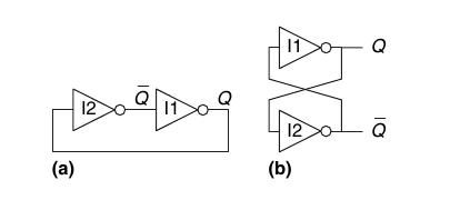 - Because the cross-coupled inverters have two stable states, Q=0 and Q=1, the circuit is said to be bistable. A subtle point is that the circuit has a third possible state with both outputs approximately halfway between 0 and 1. This is called a metastable state.