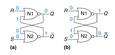 (NOR gates are used to build active high SR latches and NAND gates to build active low SR latches)