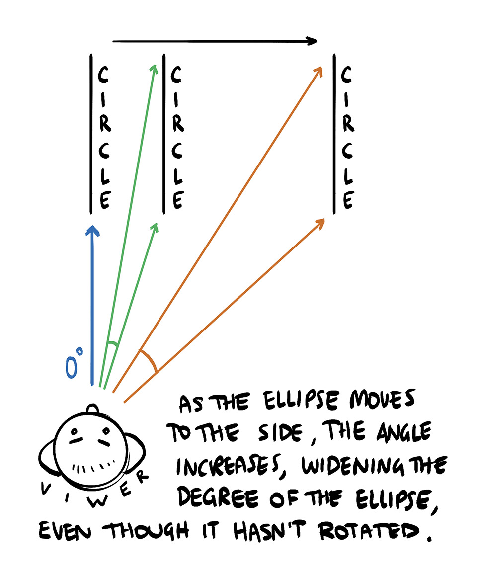 Degree: angle of rotation of circle relative to viewer
