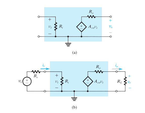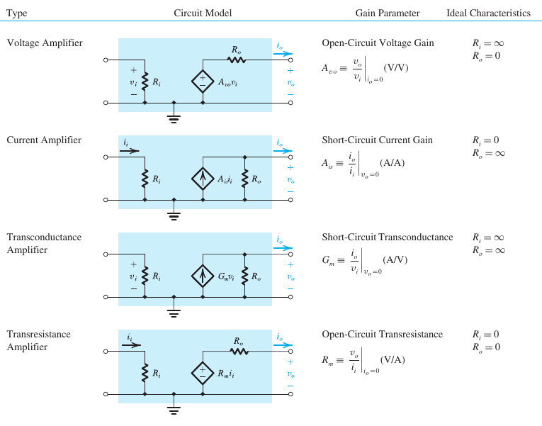 - For ideal volt amp, \(R_{in} = \infty\), \(R_{out} = R_o = 0\)