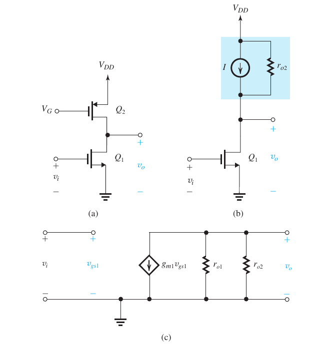 - If all transistors are identical \[A_v = -\frac{1}{2}(g_mr_o)^2\]