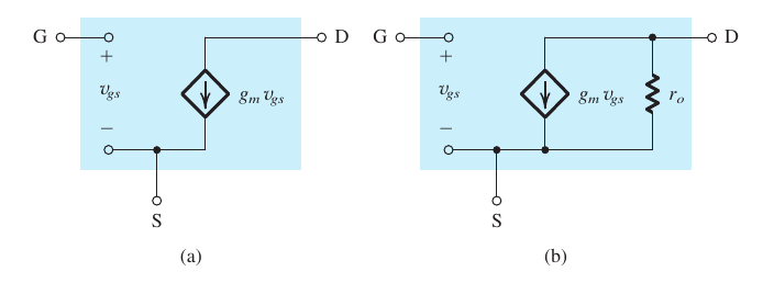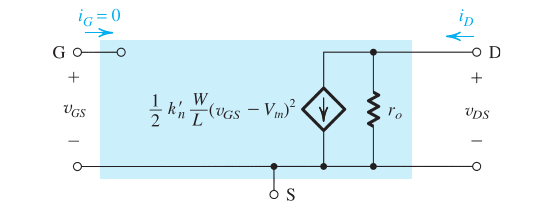 \[i_{ds} = g_mv_{gs}+\frac{v_{ds}}{r_0} \text{ where } \ r_0 = \frac{1}{\lambda I_D}\]