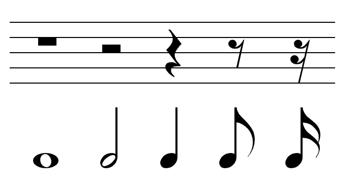 - Grand Staff: Treble and Bass Clef joined by Middle C